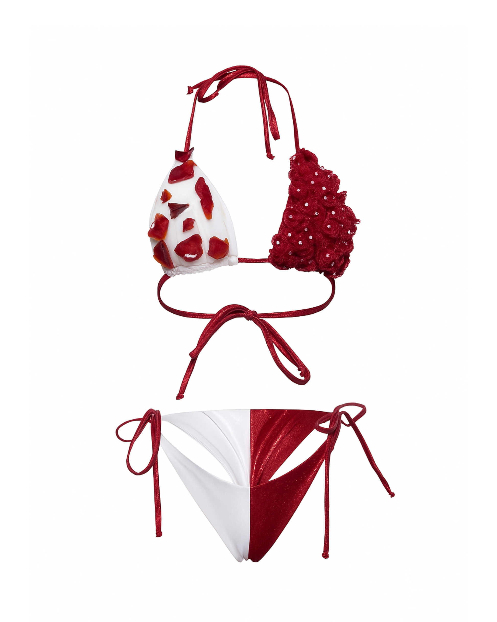 Bloodline Oath is a handmade, custom designed piece crafted with intention and care. Every detail is shaped by hand, making each swimsuit a one of a kind ceremonial garment. While this design makes a bold statement at the beach or poolside, it is not fully waterproof and is not intended for prolonged water wear. This piece was created for ritual elegance, visual storytelling, and spiritual presence ideal for sacred shoots, light water contact, or simply looking divine by the water. We recommend styling for dry wear or minimal water exposure only.